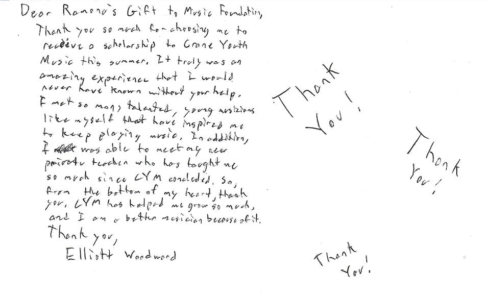 Ramona's Gift to Music is a non-profit organization that helps children advance their musical studies and performance.